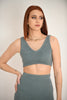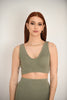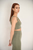 The two piece set is designed for both comfort and style. It features a cropped V-neck tank top paired with a high-waisted, form-fitting midi skirt, both crafted in ribbed fabric. This versatile set effortlessly suits any occasion.